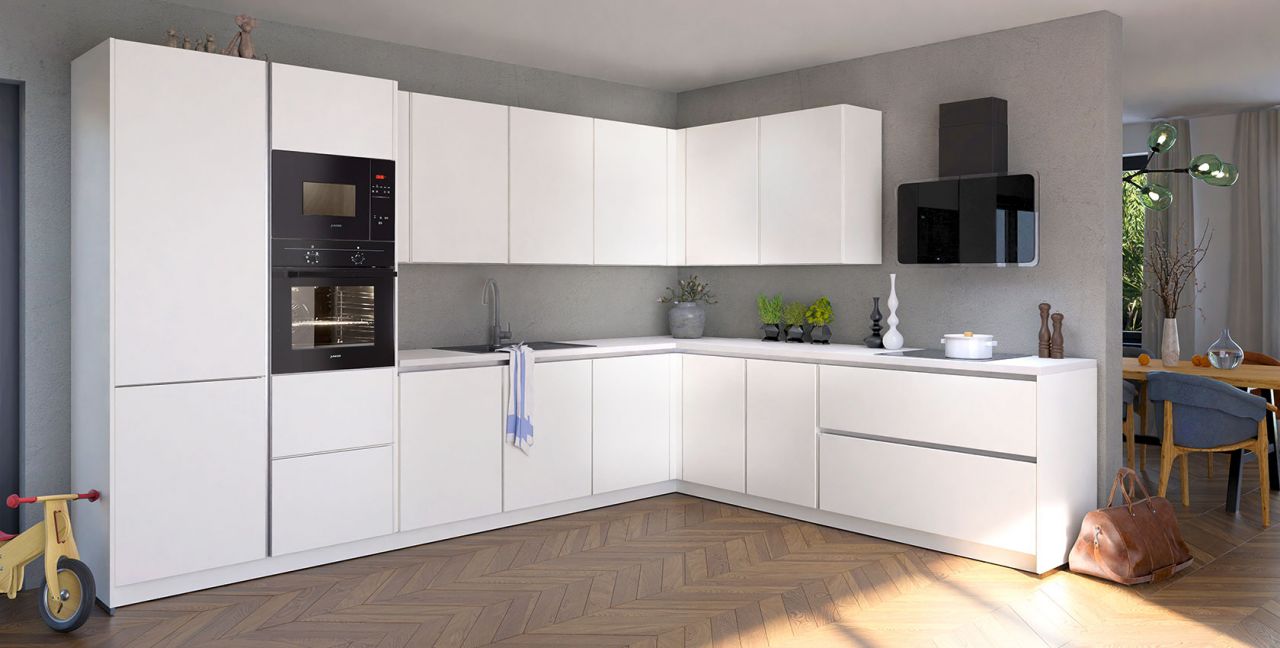 Inklusive Einbaubackofen schwarz Junker JF1300061 Energieeffizienzklasse A, Glaskeramik Kochfeld Junker JR36DT54, Dunstesse Edelstahl / Glas Faber GLAM-FIT BK80 Energieeffizienzklasse A, Kühlschrank mit **** Gefrierfach Junker JC20GCSE0 Energieeffizienzklasse E, Mikrowelle Junker JP4119260, Einbau-Designspüle Elleci Logik 300, XL-Schränken, Unterschrank mit Großraumauszügen.